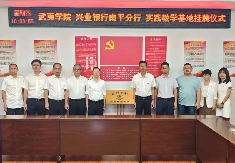 2025年10月16日上午,武夷学院与兴业银行南平分行共建实践教学基地揭牌仪式在兴业银行武夷山支行隆重举行。武夷学院商学院党委书记吕义昕、兴业银行南平分行党委委员毛鸿翚副行长、武夷学院商学院党委委员王东方副院长、兴业银行南平分行人力资源部林伟斌总经理、兴业银行武夷山支行赵峰行长,以及武夷学院商学院教科办张小春副主任、保险学系李乐主任、区域绿色经济发展研究中心党支部书记曹院平和兴业银武夷山支行业务骨干等共同参加揭牌仪式。