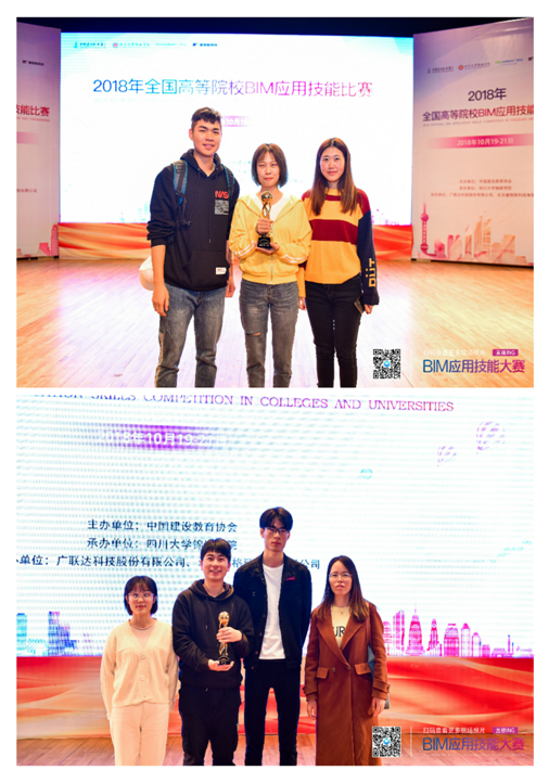 2018年全国高等院校BIM应用技能比赛于1020-21日在四川成都举办,经过激烈角逐,我院工程造价专业伊威城,李琪,方艳婷(指导教师:黎恒杆、陈安琪)三人获得bim施工项目管理团体总分第一,刘旭东,石春妹,林梅涛(指导教师:魏太兵、徐梦杰)三人获得bim造价团体总分第二及BIM5D施工项目管理成本单项第一的好成绩。