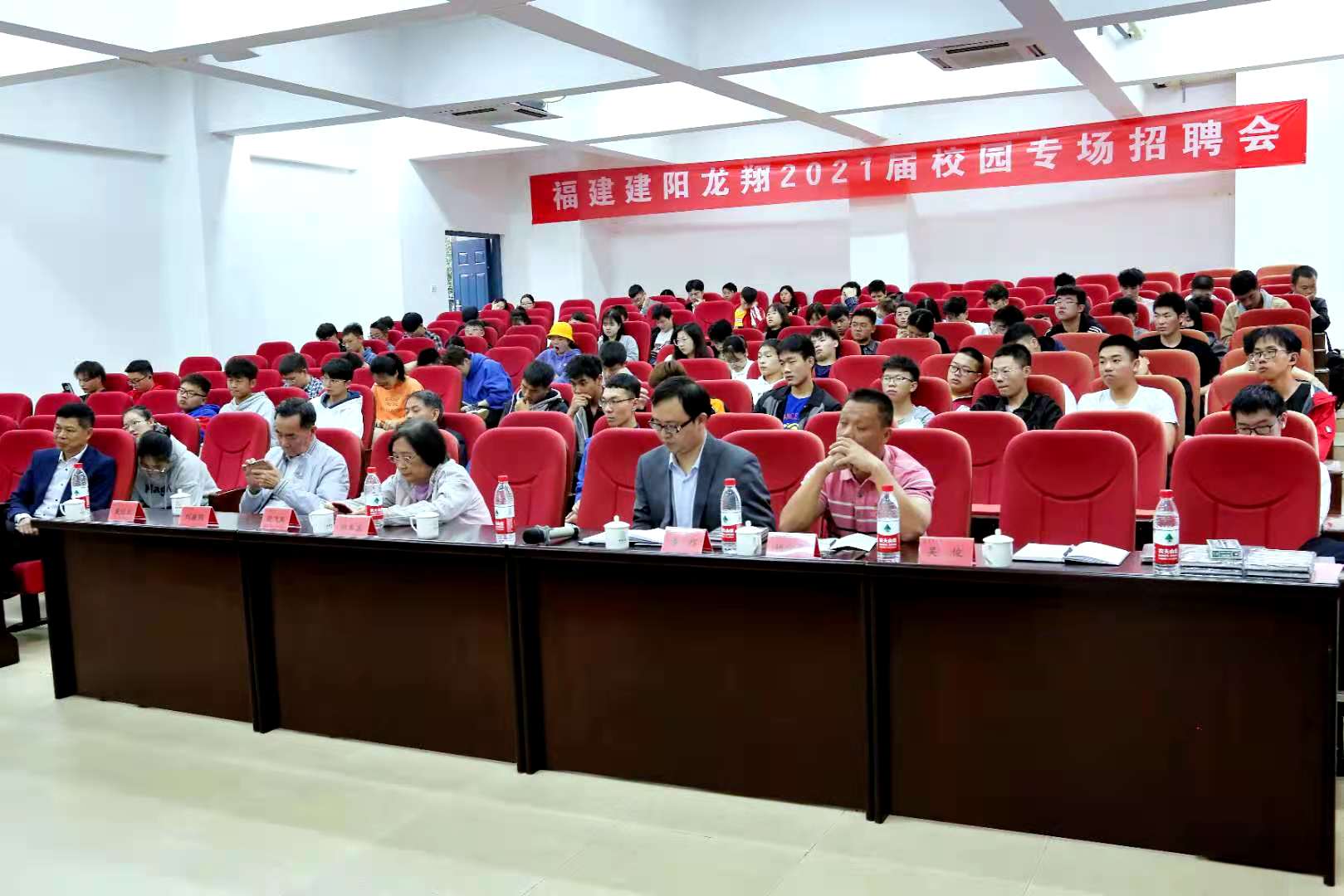 2020年11月21日上午,由学校董事会主办,土木工程与建筑学院协助承办的福建建阳龙翔科技开发有限公司2021届毕业生专场招聘会在科技楼报告厅举行。福建建阳龙翔科技开发有限公司董事长、福建省轮胎成型设备重点实验室主任兼总工程师、中国化工学会理事、我校董事会董事戴造成先生,为毕业生做了“轮胎工业及成型设备近况”的学术报告。报告会由土木工程与建筑学院副院长雷能忠教授主持,学生处刘廉明处长到会指导,建阳龙翔科技开发有限公司副董事长郑真真女士、副总经理沈国雄、进出口兼采购部经理潘辉、车间主任杨少华、团委副书记吴俊,以及来自土木工程与建筑学院、机电工程学院、商学院2021届毕业生100余人出席招聘会。