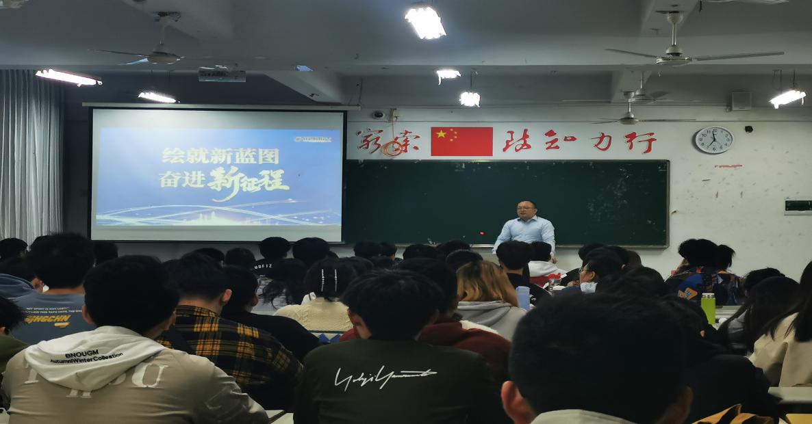 4月15日19:00,廖斌副校长在瑞樟7-201以“绘就新蓝图,奋进新征程”为主题,给同学们讲授了一堂精彩而生动的形势与政策课。
