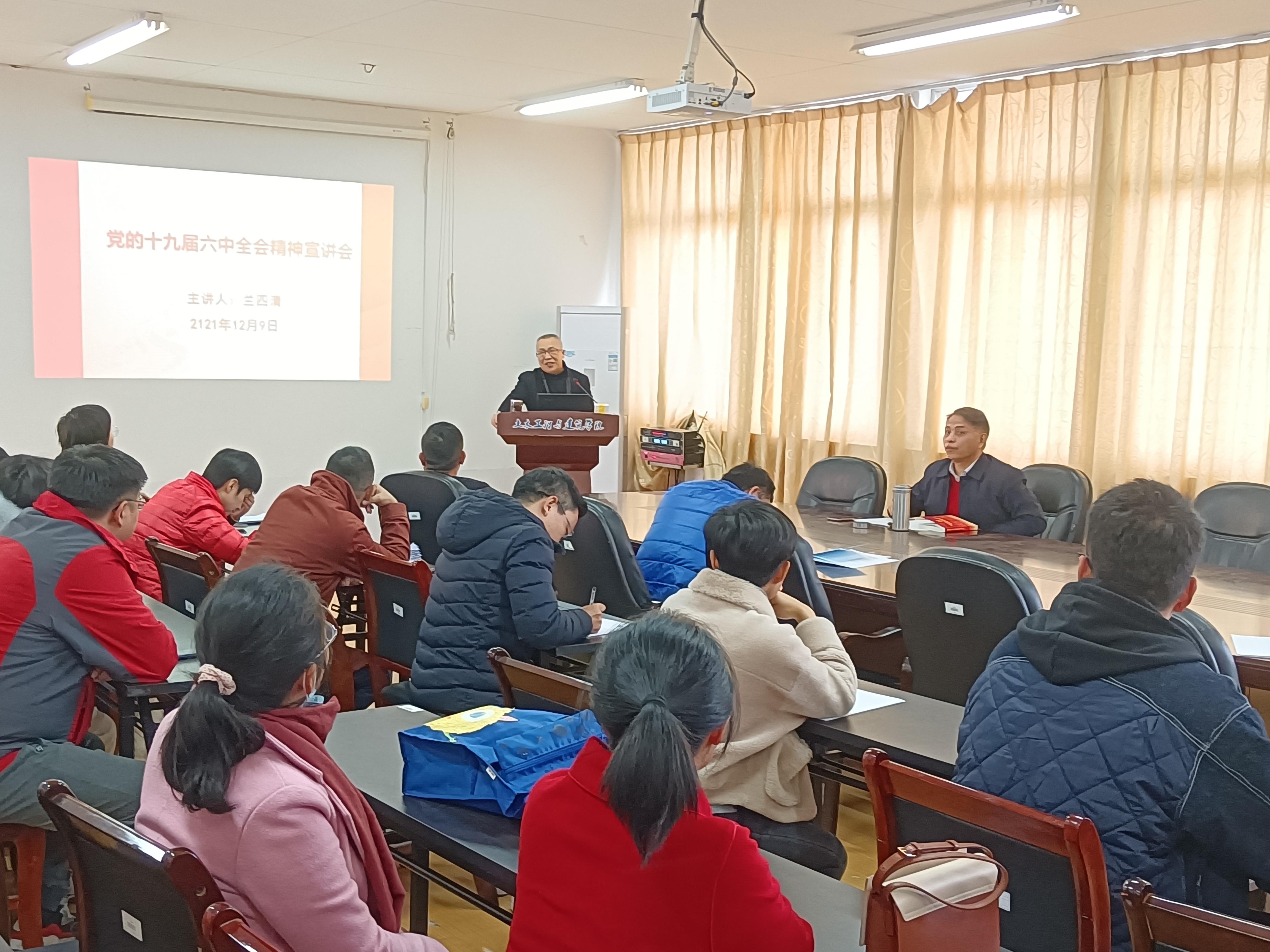 2021年12月9日下午,我院党委书记、院长兰四清同志在学院会议室向全体教职员工作学习贯彻党的十九届六中全会和省第十一次党代会精神宣讲报告。