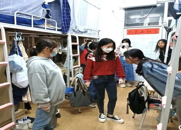 为了扎实做好疫情防控工作,落实好下午的疫情防控动员会的精神。3月18日晚,我院党委书记兰四清,副书记牟娟,学工科科长梁军带领全体辅导员以及抗“疫”青年先锋队对全院的在校生进行走访慰问。在寝室里,领导和老师们关心同学们的生活情况并进行防疫知识宣传: