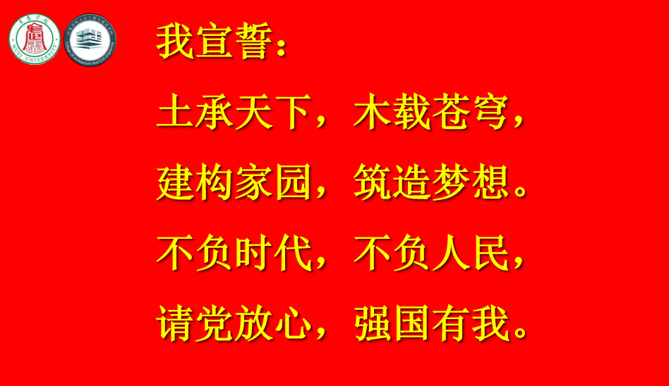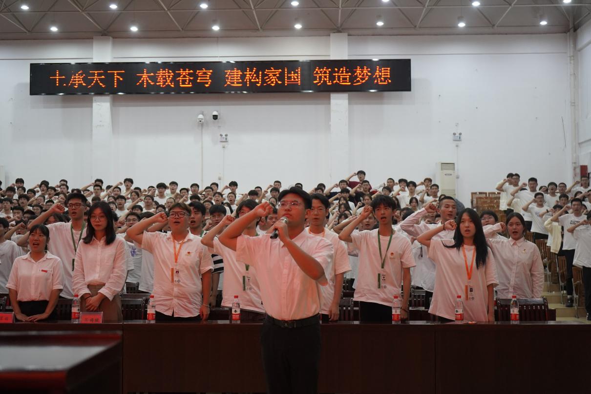 最后,院团委副书记、2021级工程造价1班黄欣同学带领全体新生集体宣誓,把见面会推向了高潮。土承天下,木载苍穹,建构家国,筑造梦想;不负时代,不负人民,请党放心,强国有我的铿锵誓言,响彻在报告厅,牢记在每一位同学的心中。
