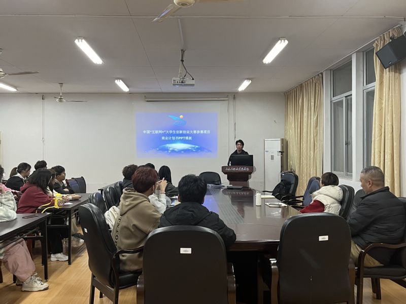 2023年11月28日晚上,我院在瑞樟7-506召开“互联网+”大学生创新创业大赛经验分享会,党委副书记牟娟老师、学院副院长魏太兵老师、学工科辅导员老师及学生代表参加了会议,会议由党委副书记牟娟老师主持。
