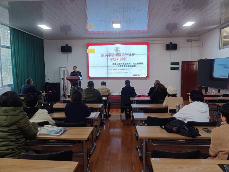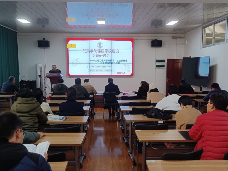 2023年12月7日由土木工程与建筑学院承办的课程思政建设专题研讨会在瑞樟7-101建筑学成果报告厅举行。校教务处处长沈慧芳、宣传部部长唐超、马克思主义学院陈利华教授及其他教学单位和我院骨干教师参加。