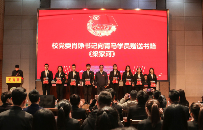 校党委肖铮书记为第十期青马班学员赠送书籍《梁家河》并作亲笔寄语。肖书记强调培训班以实际行动学习、研究、宣传、贯彻马克思主义,是我校团员青年表达对共产主义远大理想和中国特色社会主义共同理想执着追求的最好方式。他希望学员们在培训中坚持做到:一要加强理论武装,坚定理想信念。增强“四个意识”,坚定“四个自信”,做到“两个维护”,始终在政治立场、政治原则、政治方向、政治道路上同党中央保持高度一致;二要坚持深学践悟,提升道德境界。不断加强思想道德修养,养成良好的品行习惯,扣好“人生的第一粒扣子”。做到勤学、修德、明辨、笃行、爱国、励志、求真、力行。三要加强实践锻炼,敢于改革创新。坚持理论联系实际,注重知行合一,在实践中不断加深对新思想的理解,在实践中不断增强自己的本领,实现自己的人生价值。