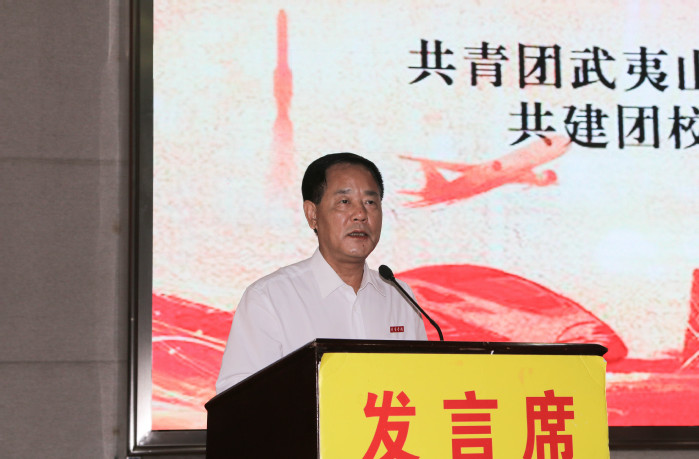 武夷山市委常委、组织部长林方,副校长陈金瑞分别为团校成立致辞。陈金瑞副校长指出,此次联建团校活动,将进一步深化双方合作,我校将认真落实共建要求,一要发挥人才智力等资源优势,为共建团校的发展添砖加瓦;二要努力培养“政治坚定、作风优良,让党放心、青年满意”的团干部队伍;三要充分利用本次合作契机,建设、利用、发展好这一平台,引导广大青年在团校中树立坚定的理想信念,培养高尚的道德情操,增强社会责任感、创新精神和实践能力。
