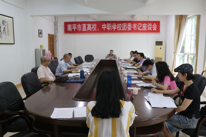 为学习贯彻落实习近平总书记在纪念五四运动100周年大会上的重要讲话精神,推进“全团抓学校”工作的进一步深入开展,5月18日,南平市市直高校、中职学校团委书记座谈会在我校顺利召开。我校杨昇副校长,南平团市委书记谷国海,副书记李林出席会议,来自全市10所学校的团委书记参加会议。
