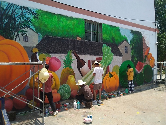 此次墙绘作为五夫镇新农村建设的重要内容,以荷花、瓜果蔬菜等五夫当地特产为创作题材,并在设计创中加入了3D绘画效果,使得墙绘作品更具有艺术性和观赏性。为五夫镇开展新农村建设,美化乡村环境、创造宜居乡村起到了积极的促进作用,提高了整体乡村文化气息,助力乡村振兴。