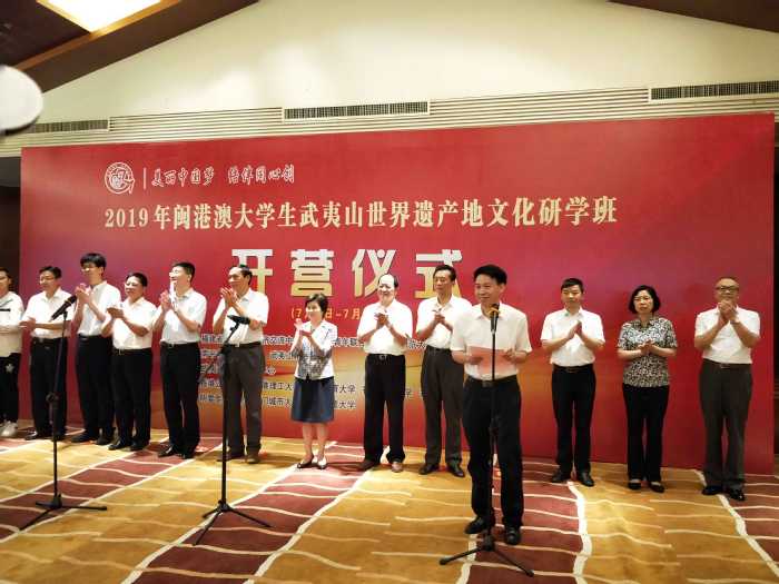 7月7日,由福建省国际文化经济交流中心、省青年联合会联合我校等单位共同主办的第五届闽港澳大学生武夷山世界遗产地文化研学营在武夷山开营。福建省人大常委会原副主任、省国际文化经济交流中心理事长陈桦向研学班授总营旗并宣布开营,我校党委书记肖铮出席本次开营仪式,我校青年马克思主义者培养工程培训班学员共25位师生参与此次为期7天的研学活动。