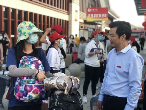 10月10日下午,张大烛副校长、学生处刘廉明处长带领有关工作负责人逐一走访了校外五个迎新接站点,慰问了迎新的志愿者同学们,详细了解了新生报到和志愿者服务情况。在接站点现场,张副校长还与新生及家长亲切交谈,对他们的到来表示欢迎,叮嘱新生们要尽快适应新环境,快速融入学校这个“大家庭”当中,开启人生新征程。