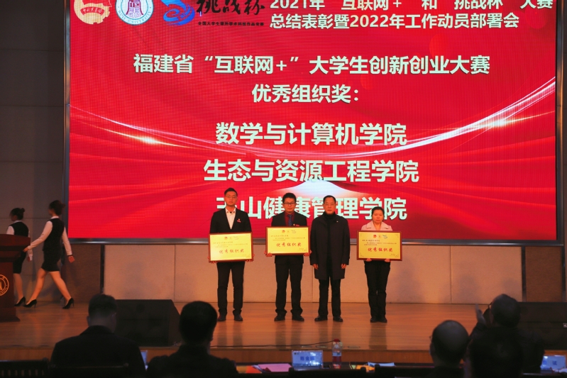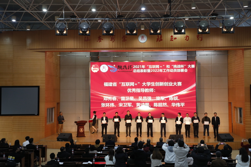 表彰会上,校团委负责同志作大赛总结报告,优秀获奖项目获得者进行项目路演。校党委副书记陈金瑞宣读表彰决定。对2021年“互联网+”和“挑战杯”两项大赛省赛获奖师生进行了表彰。