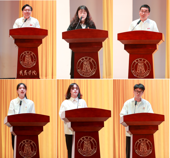 福建青年五四奖章获得者吴昌强同志、南平市五四红旗团委获得者机电工程学院代表徐丽娟同志、南平市优秀团员团干部获得者代表廖叶慧子同学、武夷学院青年五四奖章标兵获得者代表张奇同志、武夷学院社会实践先进个人(优秀志愿者)获得者代表胡孟姣同学、武夷学院青马工程培训班优秀学员代表姚子杰同学分别发言。