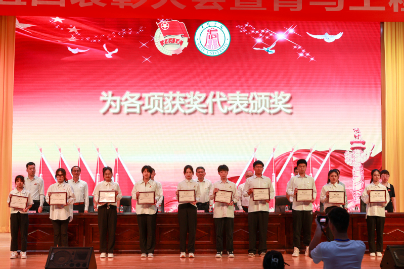 庄祥生代表校党委向全校青年师生致以节日的问候,向受到表彰的集体和个人表示热烈祝贺,肯定了我校各级团学组织在过去一年取得的成绩。他指出,青年是国家的未来,民族的希望。全校青年师生要在新征程上满怀信心开新局、展新貌,以实际行动深学细悟习近平新时代中国特色社会主义思想和党的二十大精神,结合主题教育,深入学习贯彻习近平总书记关于青年工作的重要思想,学习习近平总书记近日给中国农业大学科技小院学生的重要回信精神,在“深学争优、敢为争先、实干争效”行动中主动作为,勇做走在时代前列的奋进者、开拓者、奉献者,努力创造无愧于党、无愧于人民、无愧于时代的光辉业绩。