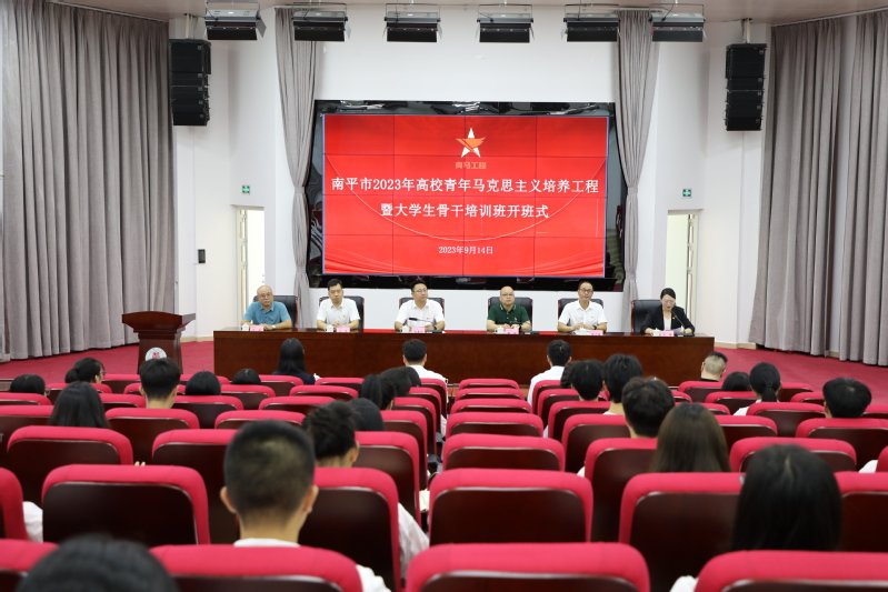 9月14日,南平市2023年高校青年马克思主义者培养工程暨大学生骨干培训班开班仪式在我校举行。校党委委员、副校长廖斌,共青团南平市委书记张嘉明出席;武夷学院、福建林业职业技术学院、闽北职业技术学院、武夷山职业学院团委负责同志,武夷学院马克思主义学院负责同志及95名学员代表参加开班仪式。