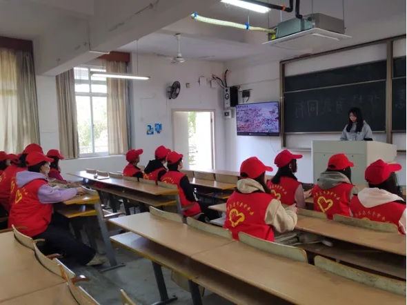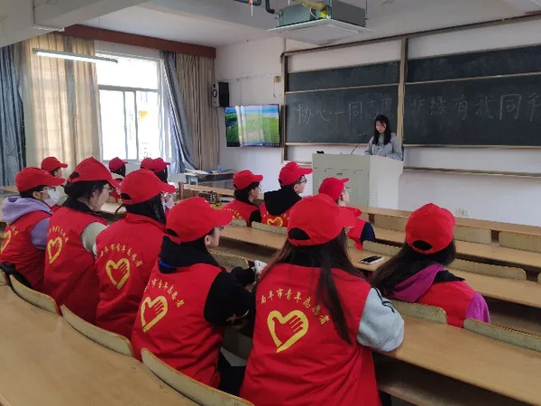 活动中,志愿者们在教室内聆听喻姿丹同学关于植树节的宣传教育演讲。演讲上,喻姿丹同学不仅向志愿者们科普植树节的定义及起源,还结合周围环境,向志愿者们介绍校内种植的部分树种及特征,让志愿者们对自己所在的校园有了更进一步的了解。同时观看植树节的相关视频,体会如今绿色发展给我们的生活环境带来的变化。