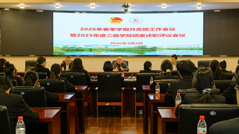 4月2日,我校召开2026年春季学期共青团工作会议暨2025年度二级学院团委书记述职评议会。校党委委员、副校长廖斌出席会议并讲话。校团委全体人员、各二级学院团委负责人及团学骨干代表参加会议。