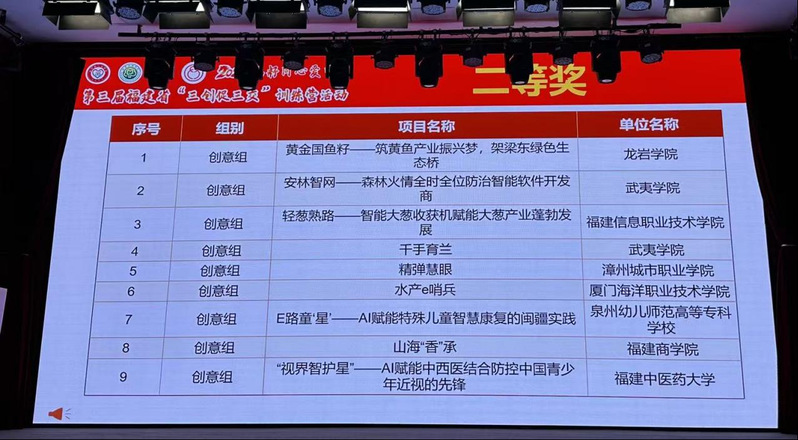 近日,福籽同心爱中华・第三届福建省“三创促三交” 训练营线下活动在上杭县圆满落幕。经过激烈角逐,我校“安林智网—森林火情全时全位防治智能软件开发商”和“千手育兰”项目凭借扎实创新、落地性强等良好表现,双双喜获二等奖。