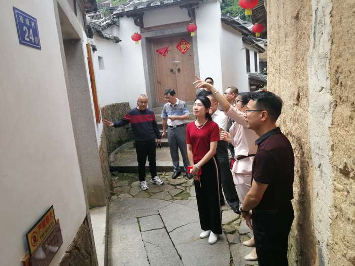 在洋中镇桂峰村考察时,庄莉部长一行边看、边听,先后参观了村里保存完好的古民居、古道、古街等重点文化景点,详细考察了该村的历史文化和建筑特色,并与村民、文创中心负责人等座谈交流,深入了解村民收入、文创产品开发以及党外知识分子在乡村振兴中的作用。