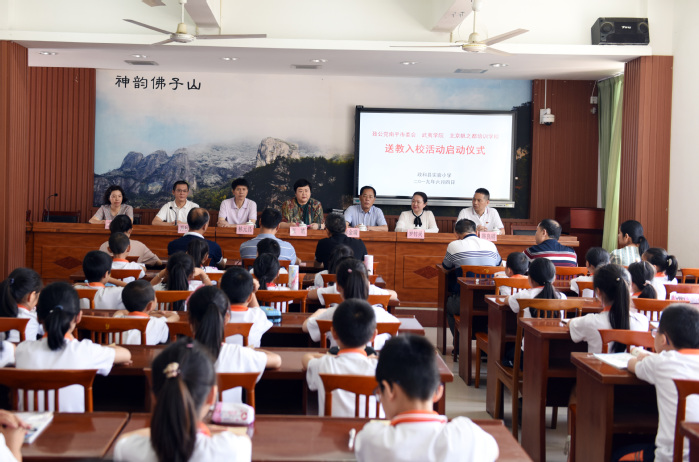 为丰富政和县实验小学、官湖分校、铁山中心小学、石屯中心小学、镇前中心小学等5所小学英语教学活动,6月4日上午,我校与致公党南平市委会、北京帆之都外语培训学校联合在政和县实验小学启动送教入校活动。南平市政协副主席、致公党南平市委会主委张皓,我校副校长陈金瑞、统战部长林元昌,北京帆之都教育信息咨询有限公司副总经理方晓敏,政和县政协副主席郑秋野等参加启动仪式,并观摩双师在线外教课程。