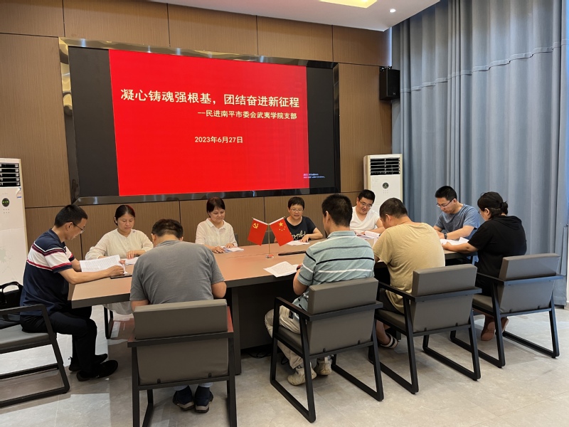 6月27日下午,校民进支部在武夷山国家安全教育展馆研讨室召开“凝心铸魂强根基、团结奋进新征程”主题教育学习会。民进南平市委委员、支部主委何兰芳,支部副主委李志鹏、刘瑞军和支部会员参加了会议。