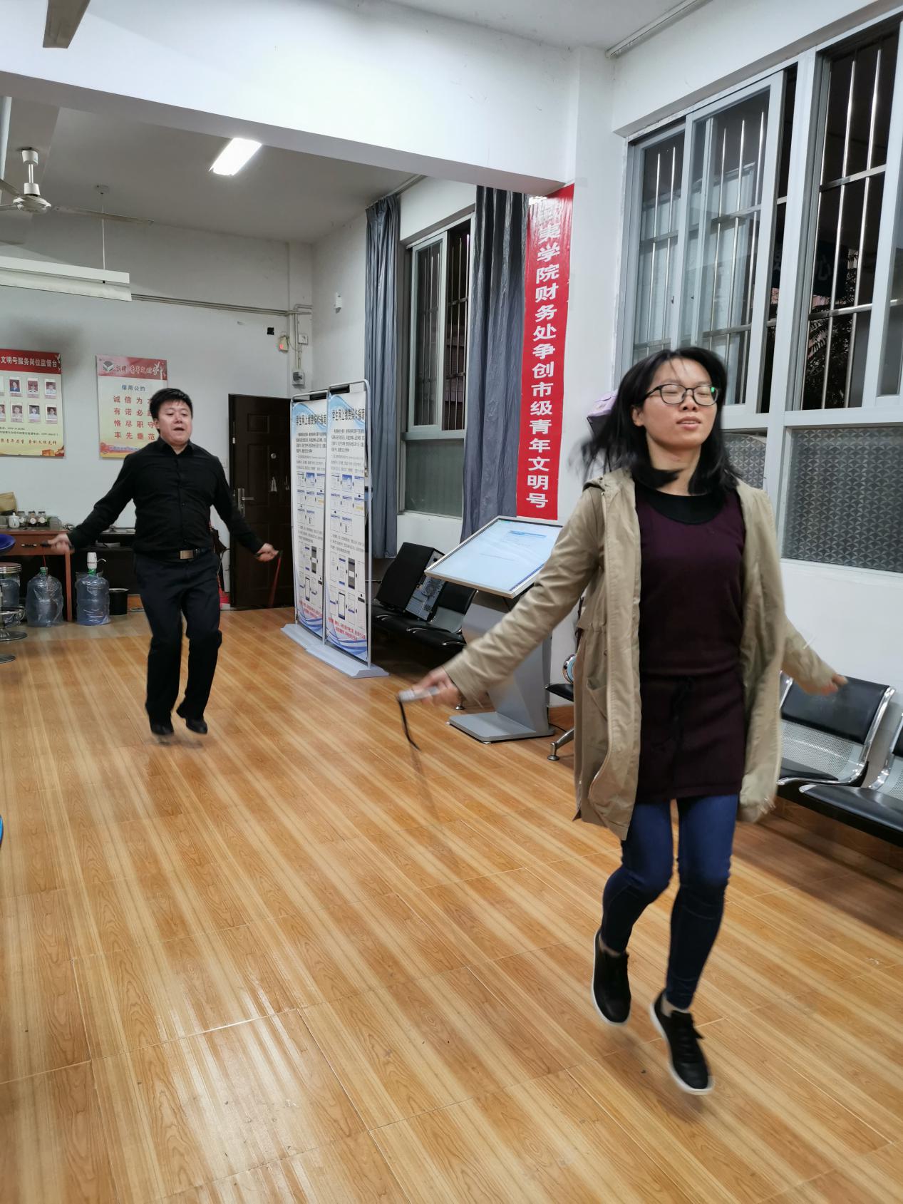 为了迎接武夷学院第三十九届校运会教工比赛,为了能让财务处工会小组全体成员积极参赛并且取得好成绩,财务处工会小组进行一场运动会赛前集训,根据大家参赛项目做了一些热身,避免大家参赛时受伤,让大家熟悉自己的比赛项目,比如:跑步、跳大绳、扔飞镖、跳绳等。