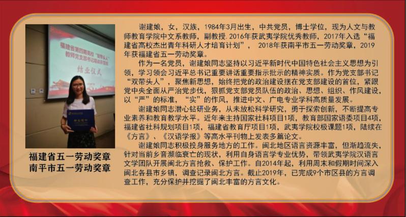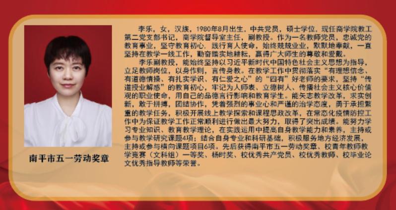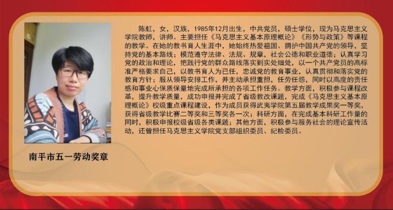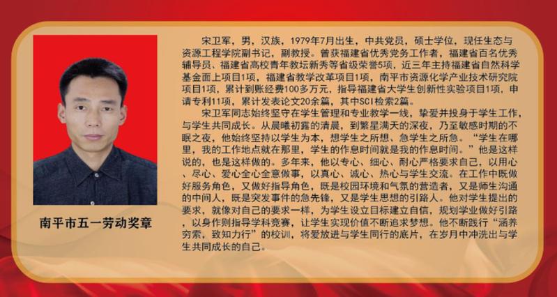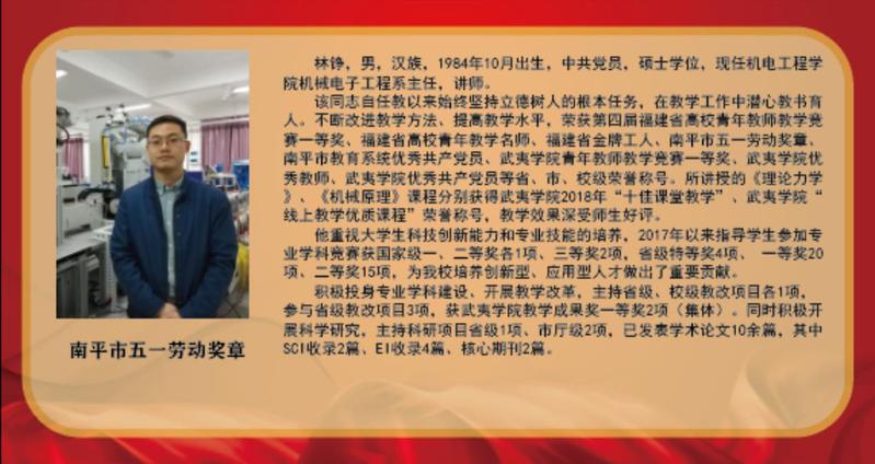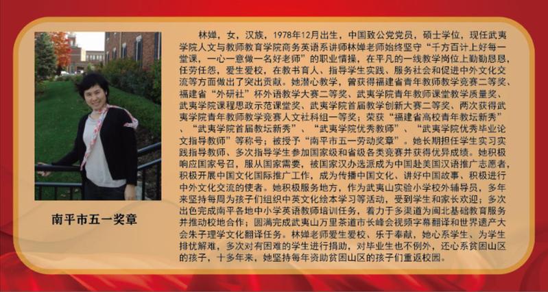 “向劳模学习、向劳模致敬”展板学习宣传活动旨在弘扬“爱岗敬业、争创一流,艰苦奋斗、勇于创新,淡泊名利、甘于奉献”的劳模精神,他们是青年教师教学竞赛、岗位练兵中脱颖而出的佼佼者,是教学、科研、服务社会中作出突出贡献的领军人物,是对外交流、传播朱子文化、促进海峡两岸文化交流上的代表者。他们坚守在工作岗位上,用润物无声的辛劳汗水诠释了劳模、劳动、工匠精神,充分诠释了新时代社会主义核心价值观,值得全体师生员工尊敬和学习。