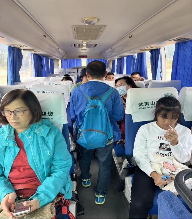 早上八点半,大家准时在校门口集合集体乘车五夫,天气晴朗,大家心情很好。