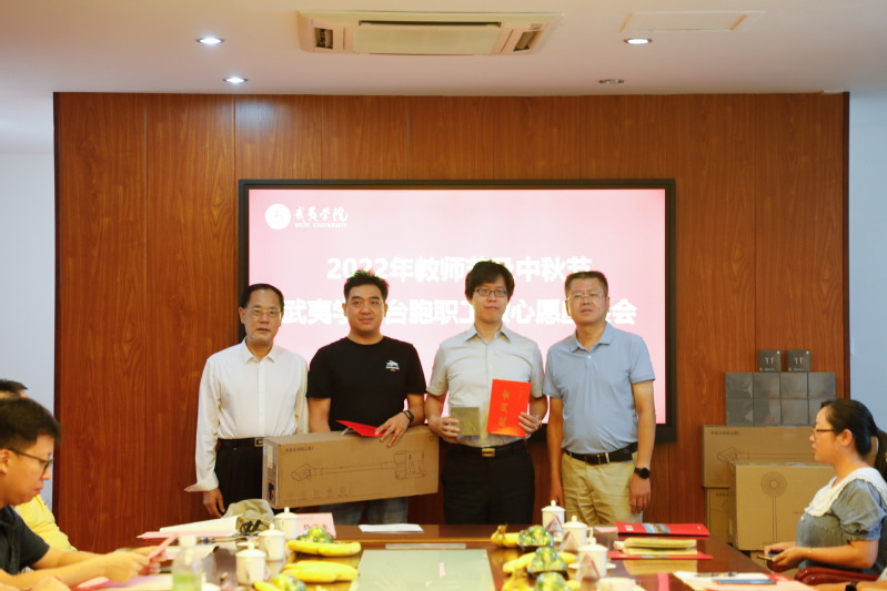 会上,朱金生首先表达对台籍教师教师节、中秋节的节日问候。他指出,长期以来,武夷学院认真贯彻党的教育方针,深刻把握新时代高等教育改革发展的新形势和新要求,全面提升教师队伍综合素质,吸引了全国各地优秀教师,特别是来自台湾的优秀教师,在促进两岸思想交流、文化交流以及为我市经济社会发展培养大量人才上作出了重要贡献。他希望大家一要一如既往地发挥好桥梁纽带作用,加强南台历史渊源和情感连结,进一步增进两岸文化认同,做两岸融合发展的“沟通者”、正能量的“传播者”;二要把自己全部的精力和智慧献给闽北教育事业,在教书育人的工作中不断创造新的业绩;三要借助闽台职工交流基地,促进南台交流合作向更宽领域、更深层次发展,更好地实现互补交融、互利共赢。随后,朱主席代表省总工会送上节日的台胞慰问金和微心愿纪念品。