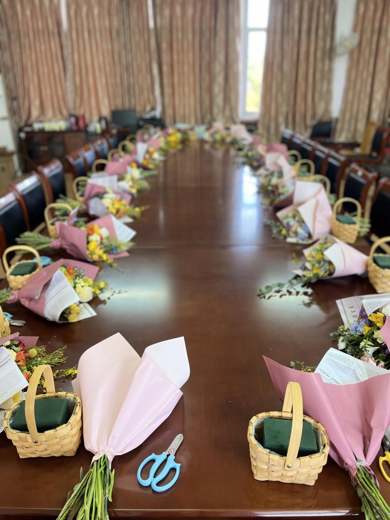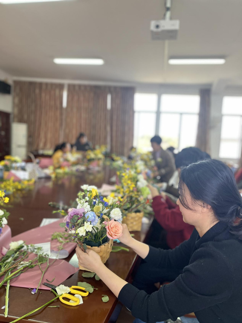 在花的世界里,女教职工们书写下春天的讯息,用插花展现心中的锦簇花团。相信未来的每一天,全体教师将更加相亲相爱,为美好的明天奉献青春和力量。