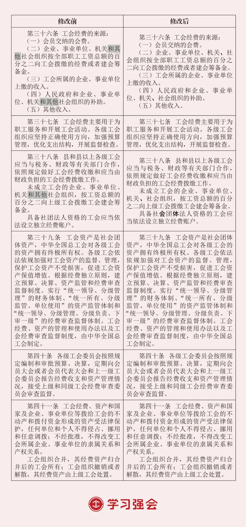 2023年《中国工会章程》修改前后对照表