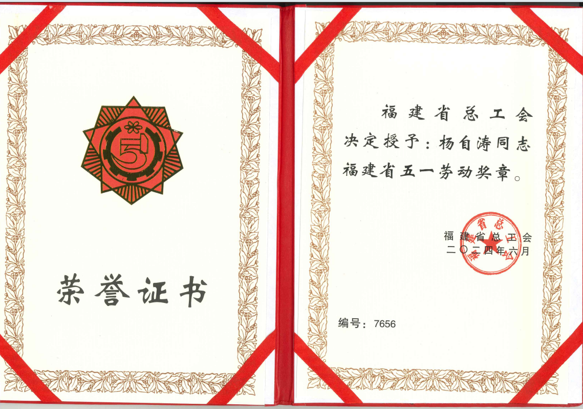 “福建五一劳动奖章”是福建省总工会授予在我省各行各业各个领域中充分发挥主力军作用,为发展新质生产力、推动高质量发展做出巨大贡献的忠诚履职、勇于创新、甘于奉献的先进个人。