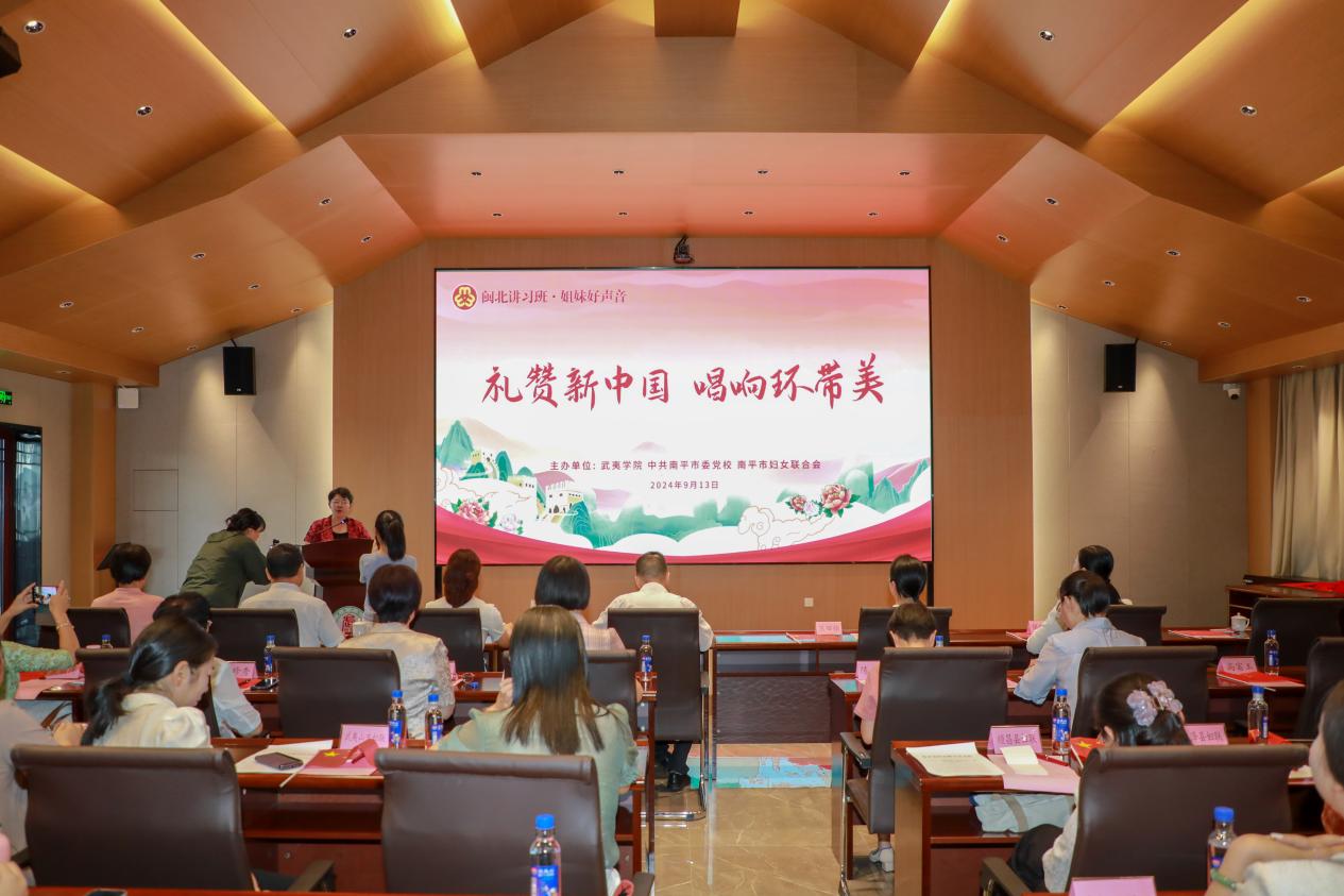 在全校深入学习宣传贯彻党的二十大和二十届三中全会精神、热烈庆祝中华人民共和国成立75周年之际,9月13日上午,由武夷学院、中共南平市委党校、南平市妇联共同主办的“礼赞新中国·唱响环带美”主题活动在武夷学院朱子书院成功举办。武夷学院党委委员、副校长郑细鸣,南平市妇联党组书记、主席张田怡,市委党校副校长李斌等出席活动。校妇工委和来自全市各行各业的优秀巾帼宣讲员、特色巾帼宣讲队代表及武夷学院师生代表、市县两级妇联干部等近百人参加活动。