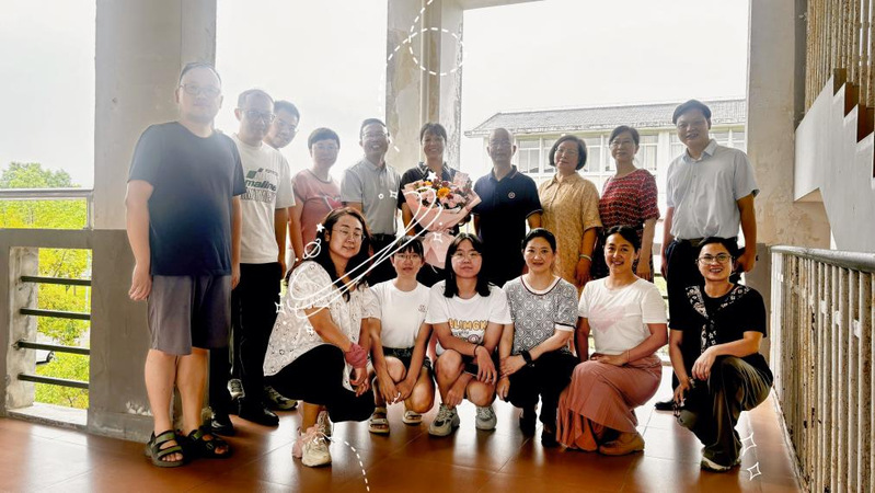 仪式结束后,工会代表为兰丽华老师献上鲜花并颁发了纪念品,所有参与仪式的老师合影留念。