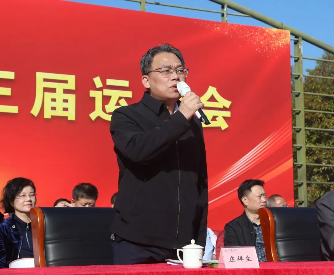 校党委书记庄祥生宣布我校第四十三届运动会开幕。
