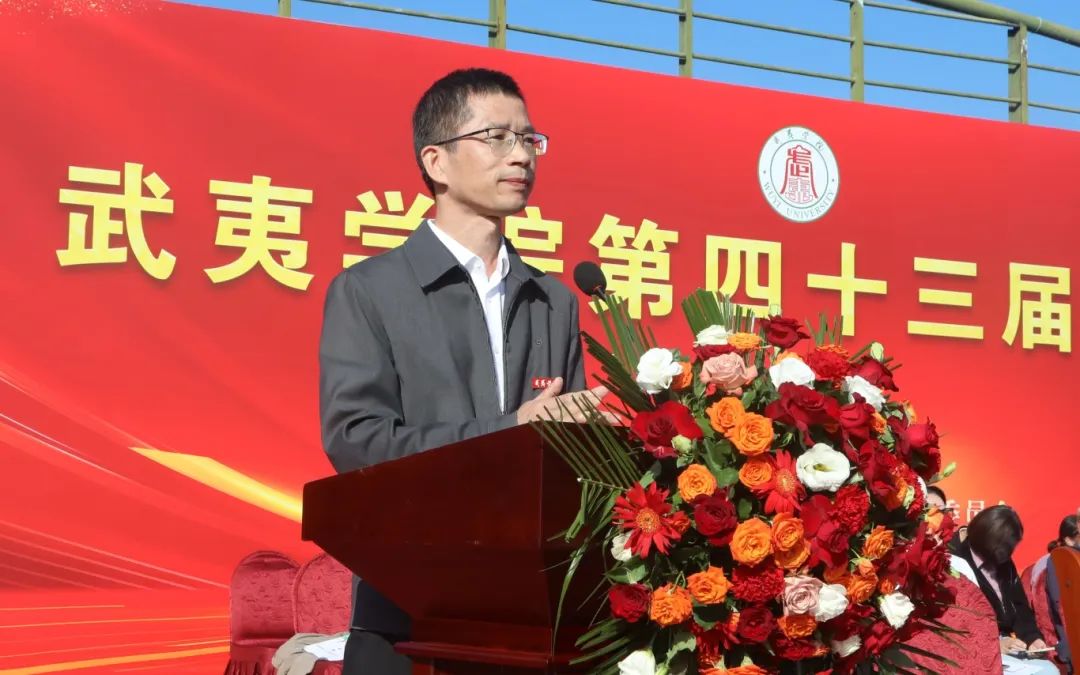 校党委副书记、校长吴承祯致开幕词。他表示,校运会是学校的体育盛事,是广大师生展示风采、促进交流的重要载体,也是强化学校体育工作、增强学生体质的重要举措,对加强校园精神文明建设,提升校园文化品位具有重要意义。他要求全体裁判员认真履职,秉公裁判,确保比赛公平公正;全体工作人员坚守岗位、热情服务,保障运动会顺利进行;全体运动员遵守规则,文明参赛,尊重对手、尊重裁判,赛出水平、赛出风格。他希望运动健儿们在赛场上感受运动、享受运动,把运动会中展现的体育精神转化为推动新一轮申硕工作、深化教育综合改革、教育强国项目建设等重点工作落实的不竭动力,为加快推动一流应用型大学建设、谱写中国式现代化建设新篇章而不懈奋斗。