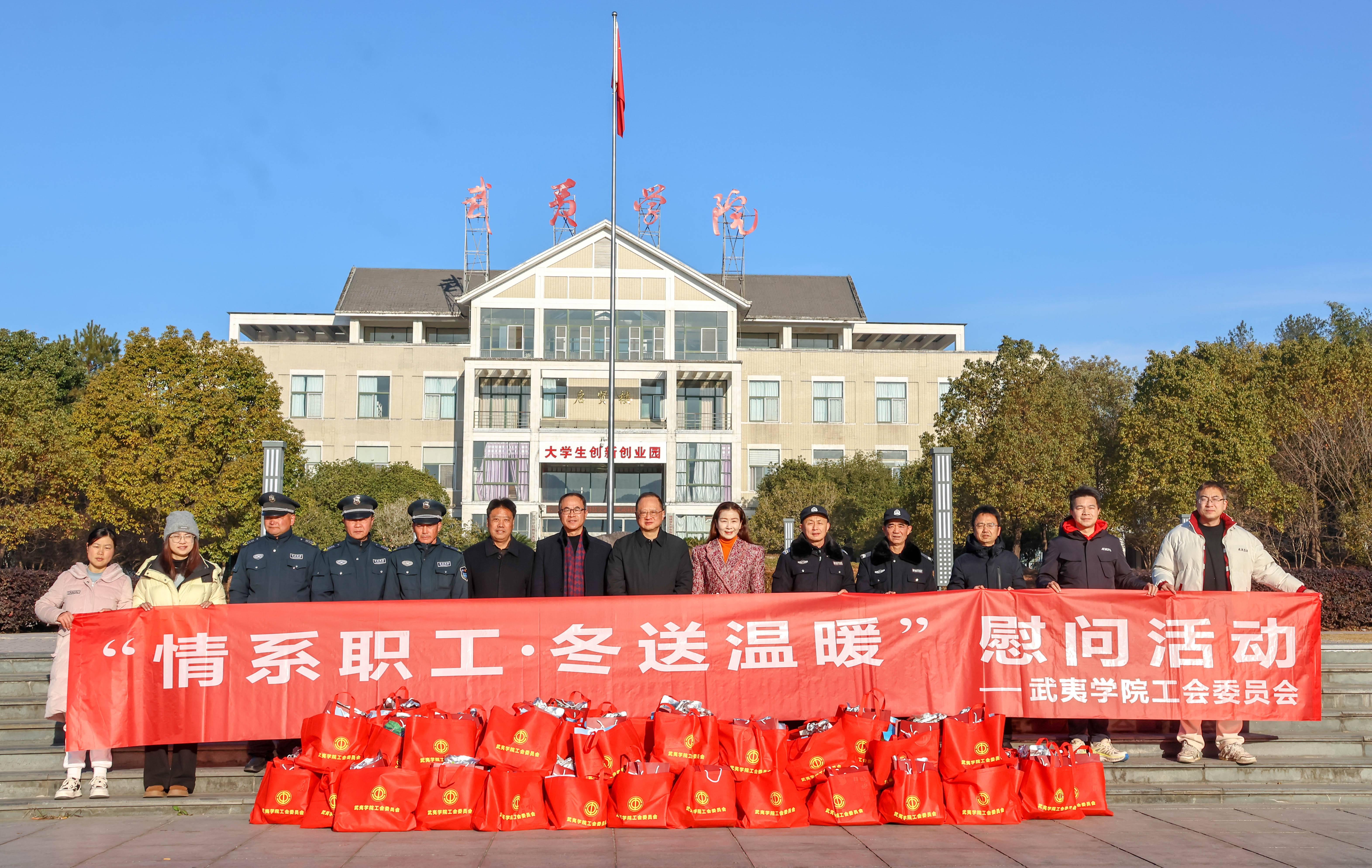 岁末大寒至,校园有温情。1月20日早上,校党委副书记、工会主席梁方率队前往武装部(保卫处)、后勤管理处等部门,看望并慰问严寒天气依然坚守在工作岗位中的一线教职工和派出所的民警们,将学校的关心关怀、工会组织的温暖送到一线职工心坎上。