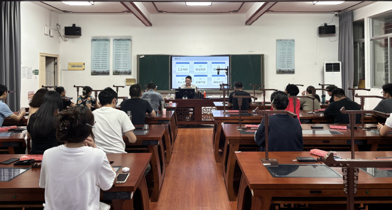 9月18日晚,由武夷学院教职工书法协会主办的书法鉴赏专题讲座在同文教学楼书法教室圆满举行。讲座以《如何定义一幅好的书法作品——以抖音书法神童李明同学说起》为主题,吸引了来自众多教职工到场聆听。协会指导教师王鑫担任主讲。