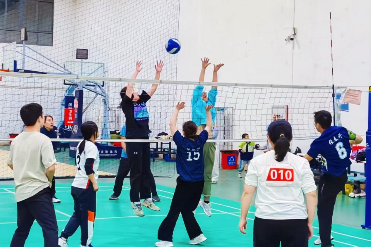随着一声清脆的哨响,比赛正式拉开帷幕。平日里手握粉笔、深耕岗位的教职工们,此刻换上运动装化身赛场猛将,发球精准有力、垫球稳扎稳打、传球默契十足、扣球凌厉迅猛,每一个动作都衔接行云流水。飞身救球时的坚韧、巧妙吊球时的灵动、默契拦网时的同心,都展现出力量与美的完美融合,定格成一幕幕精彩瞬间。