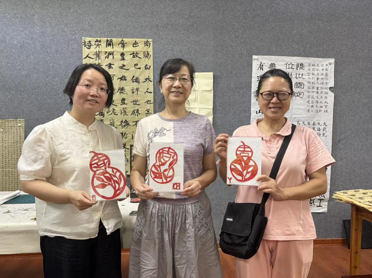 活动伊始,肖玲首先介绍了剪纸艺术的历史背景和文化意义,随后详细讲解了剪纸的基本技巧和创作方法。在肖老师的指导下,参与者们纷纷拿起剪刀和彩纸,开始尝试自己的剪纸创作。他们或剪或刻,或折或叠,一时间,教室里充满了欢声笑语和剪纸的沙沙声,最终大家都完成了《葫芦(谐音福禄)》的剪纸作品,满载而归。