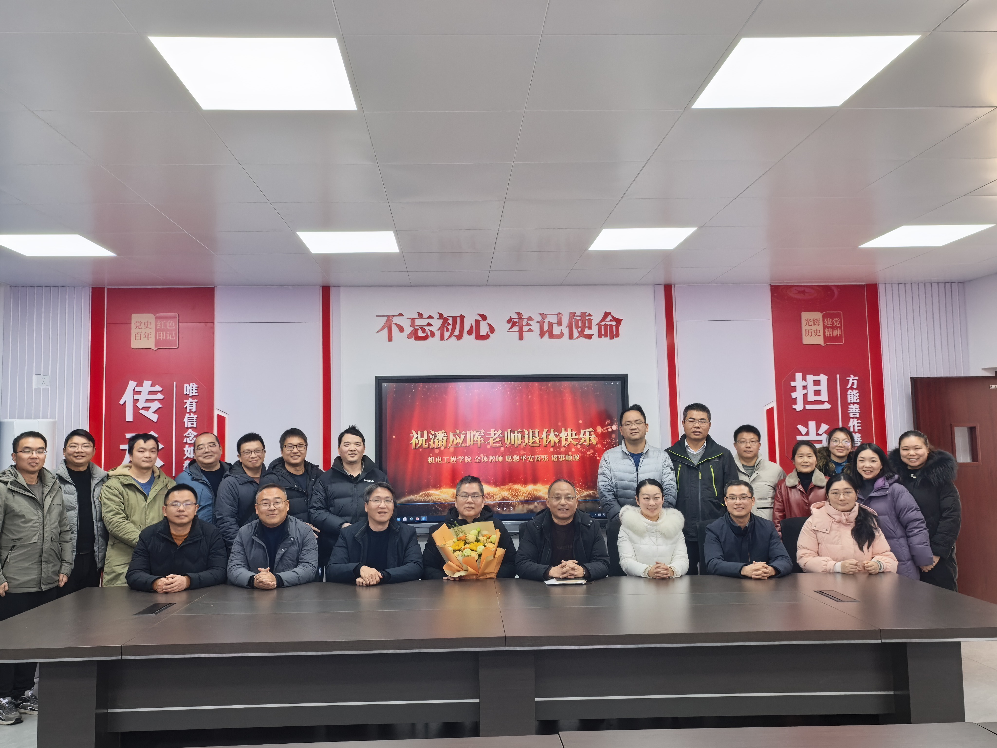 1月15日,机电工程学院在瑞樟5号教学楼301会议室为潘应晖副教授举办荣休座谈会。院领导班子成员、机械教研组教师代表齐聚一堂,共同回顾潘老师多年来在教学、管理岗位上的辛勤耕耘与无私奉献,并向他表达诚挚的敬意与祝福。