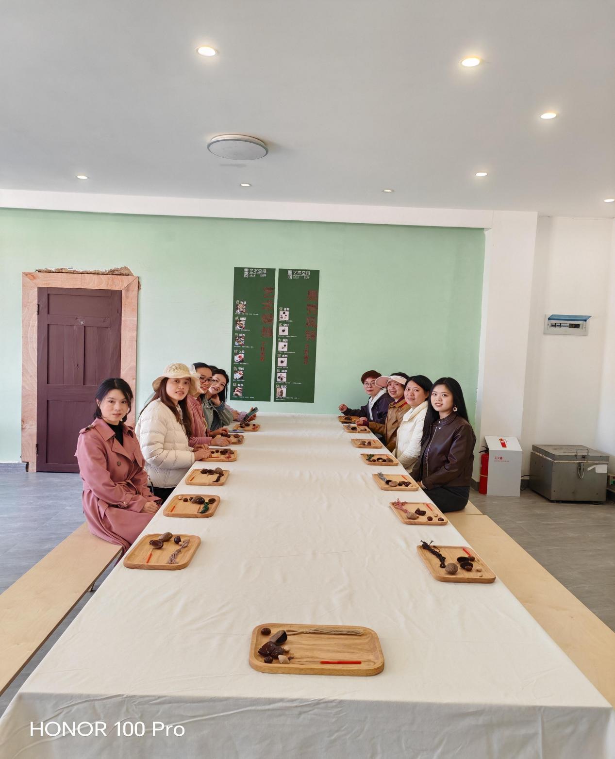 活动首站来到黄村墨问艺术空间,手工 DIY 风铃环节温馨开启。女教职工们在专业工作人员的细致指导下,充分发挥巧思与创意,穿绳、组装、装饰,一步步将简单的材料制作成独具特色的风铃。大家相互交流技巧、分享创意,现场欢声笑语不断,在动手创作的过程中舒缓了工作压力,增进了彼此的沟通与情谊。