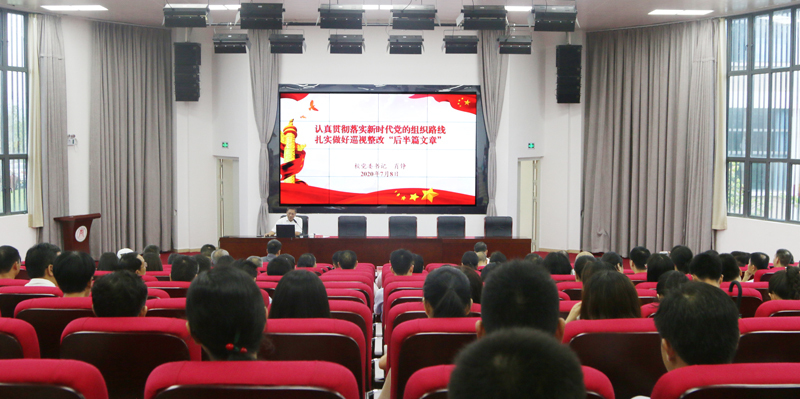 7月8日,校党委书记肖铮在圣农报告厅为全校科级以上干部、辅导员作《认真贯彻落实新时代党的组织路线,扎实做好巡视整改“后半篇文章”》党课。校领导杨昇、陈宗荣、张大烛参会。