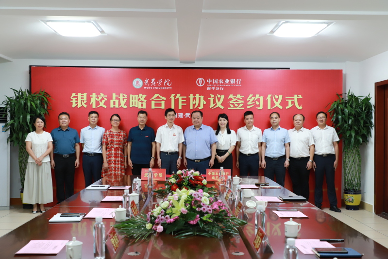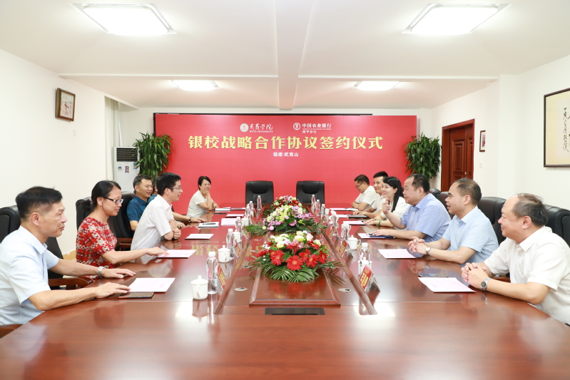 8月19日下午,我校在与中国农业银行南平分行在小会议室签署银校战略合作协议。农行福建分行副行长沈明池,校领导吴承祯、张大烛出席签约仪式。双方相关部门负责人参加仪式。