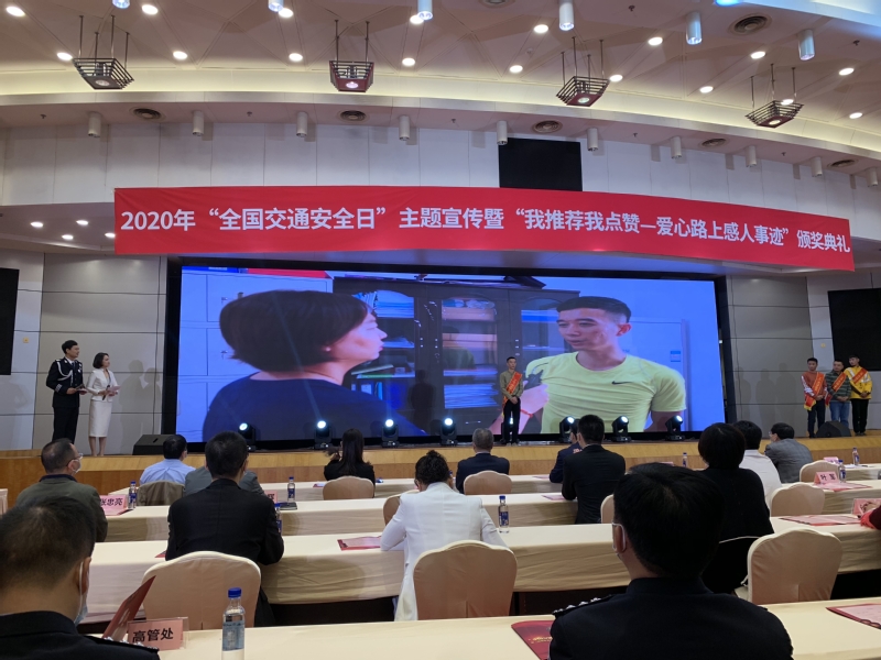 颁奖典礼上,我校后勤处郑杰同志作为“2020年‘全国交通安全日’主题宣传暨‘我推荐我点赞——十大爱心路上感人事迹’‘感动人物’”受到表彰。