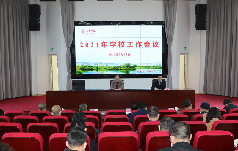 3月18日,我校在圣农报告厅召开2021年学校工作会议,校党委书记肖铮主持会议,校党委副书记、校长吴承祯总结部署工作,校领导陈金瑞、陈宗荣、张大烛、廖斌、郑细鸣出席会议。