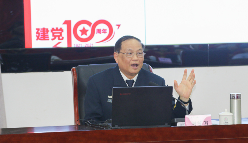 3月31日下午,我校召开党史专题学习报告会,邀请海军东海舰队某基地原政委、上海市新四军历史研究会会长刘苏闽少将作《讲好党的故事传承红色基因》辅导报告。校领导肖铮、吴承祯、杨昇、陈宗荣出席,校党委副书记陈金瑞主持会议。