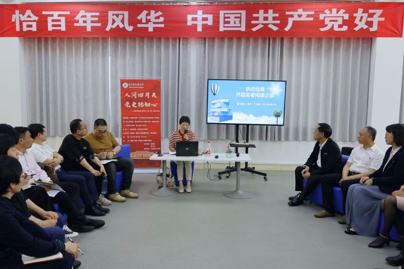 同时,“恰百年风华 中国共产党好”教工读书分享会别开生面地在我校职工书屋举行,来自各院系的教师代表30余人参加了读书分享会。马克思主义学院陈文教授从“创作背景”“内容梗概”“人物形象和艺术特色”“主题思想和经典感言”四个方面,品读了美国记者埃德加·斯诺的不朽名著《红星照耀中国》。在分享互动环节中,教师们畅所欲言,纷纷表示,值此建党百年之际,重温这部红色经典,让我们再次深刻体会到中国共产党的伟大。