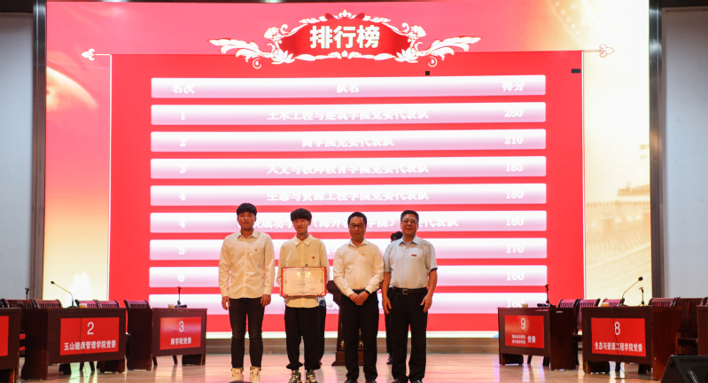 知识竞赛设必答环节、抢答环节和加赛环节三个环节。参赛小组依据答题情况,采用积分制进行计分。为增加特色和趣味性,本次比赛还设置了“革命歌曲竞猜”环节。各参赛队精神饱满,踊跃答题,现场氛围十分活跃。经过激烈的角逐,土木工程与建筑学院党委代表队荣获一等奖,商学院、人文与教师教育学院党委代表队荣获二等奖,生态与资源工程学院、海峡成功学院(海外教育学院)、茶与食品学院党委代表队荣获三等奖。