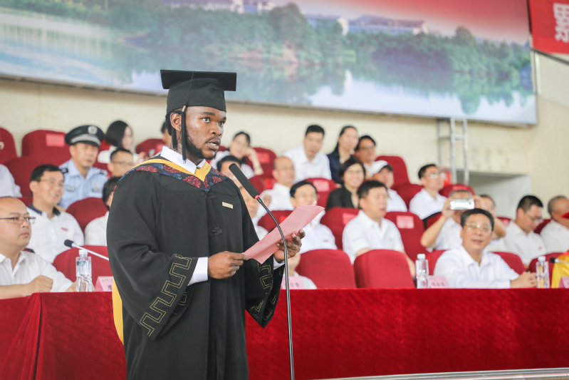 留学生毕业生代表、来自南非的海外教育学院建筑学专业的墨卓同学发言